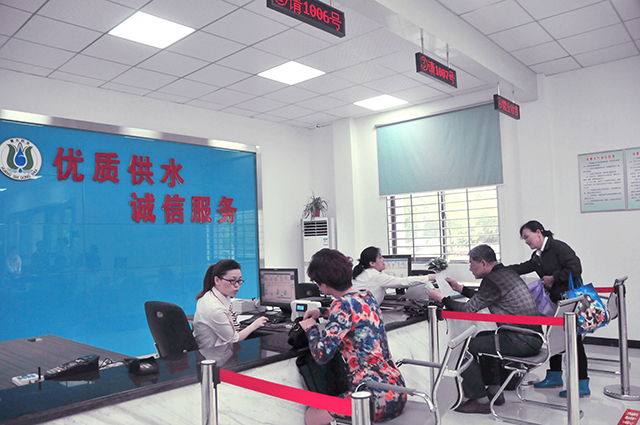 如今,165平方米的營業(yè)廳,設有休息區(qū),咨詢臺,業(yè)務受理區(qū)、客戶繳費區(qū),用戶可在大廳辦理過戶、銷戶、繳費、報停、復裝、信息登記變更等業(yè)務。另外,大廳門口處,設有智能排隊管理系統(tǒng),能解決用戶在窗口繳水費、預存水費時遇到的擁擠、插隊等問題。
