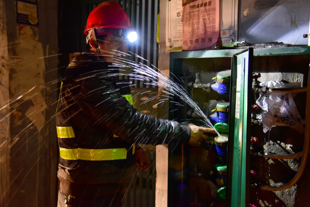 如圖:元月27日晚,營銷公司搶修工人在代司里小區(qū)更換凍破的水表