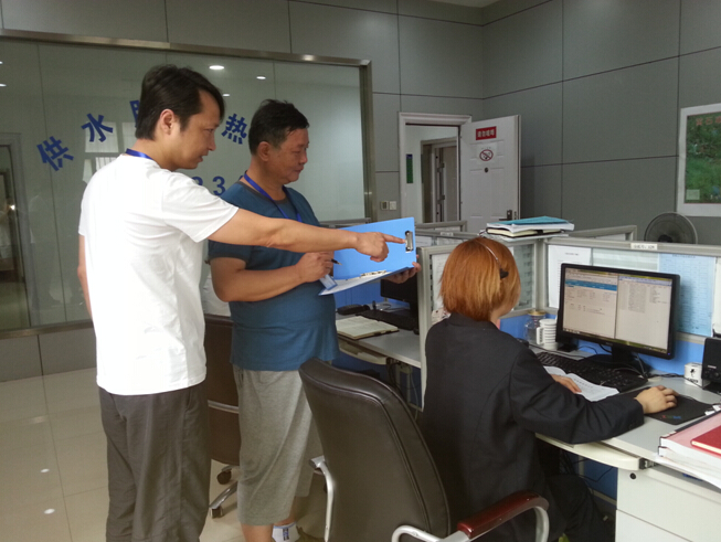 圖為:紀(jì)檢員在“供水服務(wù)熱線”對(duì)用戶來(lái)電故障報(bào)修、反映問(wèn)題等落實(shí)情況進(jìn)行檢查。