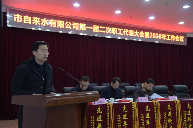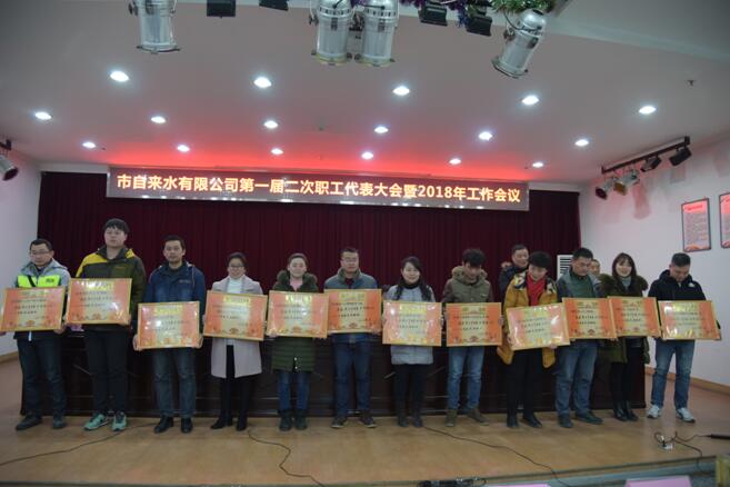 會上對2017年度先進(jìn)集體和個人進(jìn)行了表彰。接著,公司黨委書記、董事長余曦同志代表班子作了2017年工作報告,他在報告中客觀詳實地總結(jié)了2017年公司的各項工作,重點對供水安全、項目建設(shè)、融資工作、改革創(chuàng)新、供水服務(wù)、應(yīng)急處置、黨建群團(tuán)工作七個方面進(jìn)行了總結(jié),各項工作取得了實效,全年實現(xiàn)售水量8398萬噸,實現(xiàn)經(jīng)營總收入2.05億元,產(chǎn)銷差率23.33%,管網(wǎng)水質(zhì)綜合合格率達(dá)到100%,全年無重大安全事故發(fā)生。報告中還強(qiáng)調(diào)了2018年的主要計劃和重點工作:一是以保障供水能力為抓手,大力推進(jìn)項目建設(shè)。二是以體制機(jī)制建設(shè)為動力,繼續(xù)深化改革創(chuàng)新。三是以隊伍建設(shè)為保證,促進(jìn)企業(yè)健康發(fā)展。四是以全面從嚴(yán)治黨為重點,營造干事創(chuàng)業(yè)氛圍。五是以職工利益為出發(fā)點,增強(qiáng)企業(yè)凝聚力和職工幸福感。