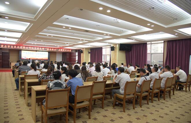 參觀結(jié)束后,公司機(jī)關(guān)黨支部在大冶檢察院會(huì)議室舉辦了“廉潔供水”主題黨日活動(dòng),黨員干部們重溫入黨誓詞,誦讀黨章,學(xué)習(xí)了《習(xí)近平談治國理政》等內(nèi)容,并結(jié)合自身和企業(yè)實(shí)際暢談了參觀警示教育后的心得體會(huì)。公司黨委書記、董事長余曦作總結(jié)發(fā)言,他要求全體黨員干部要進(jìn)一步加大學(xué)習(xí)法律法規(guī)、黨規(guī)黨紀(jì)的力度,增強(qiáng)自律自醒意識,反腐倡廉警鐘長鳴。
