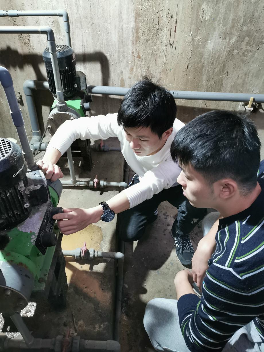 圖為競賽申創(chuàng)對象王家里水廠生產(chǎn)技術科科長嚴志勇發(fā)揮“傳幫帶”作用,帶領青工進行技術改造。