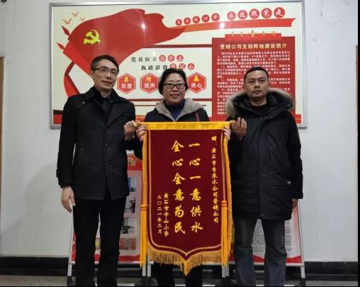 2月26日,中山小學向市自來水有限公司求助,因新建教學樓,用水量突增,導致水壓降低,嚴重影響學校正常用水。市自來水有限公司立即組織人員趕赴現場,勘察情況,分析原因,提出解決方案,并加班加點免費為學校安裝戶內加壓水泵,解決了學校的用水難題,保障了學生安心上課。其后,中山小學送來錦旗:一心一意供水,全心全意為民。