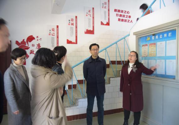 圖為市國資委、城發(fā)集團(tuán)領(lǐng)導(dǎo)實(shí)地參觀涼亭山水廠廉潔格言文化路、“清廉水務(wù)”文化墻(角)