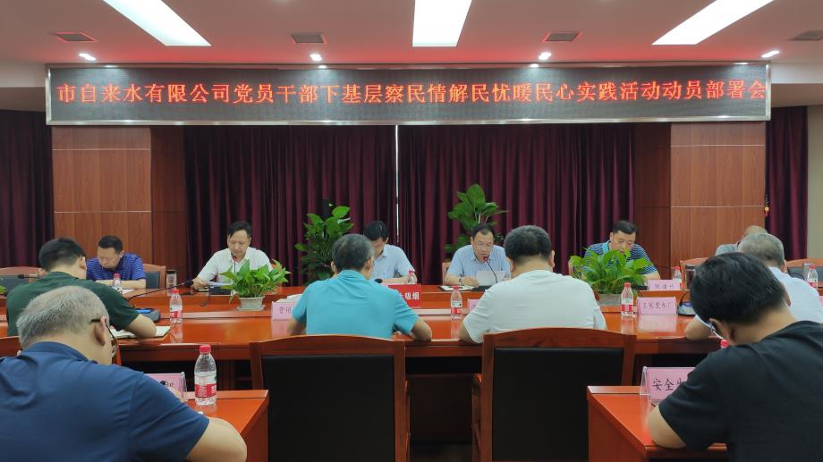 6月2日下午,市自來水有限公司召開黨員干部下基層察民情解民憂暖民心實踐活動動員部署會。會議傳達學(xué)習(xí)了省、市、城發(fā)集團實踐活動會議和相關(guān)文件精神。公司領(lǐng)導(dǎo)班子成員、基層單位負(fù)責(zé)人、機關(guān)部室負(fù)責(zé)人參加會議。