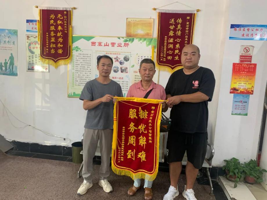 8月9日,陽光灼熱卻擋不住用戶感激之情,市民向市自來水有限公司送上“排憂解難 服務周到”錦旗,感謝公司及時發(fā)現(xiàn)市民戶內管線漏水,免費更換管線維修,保障市民家庭用水。