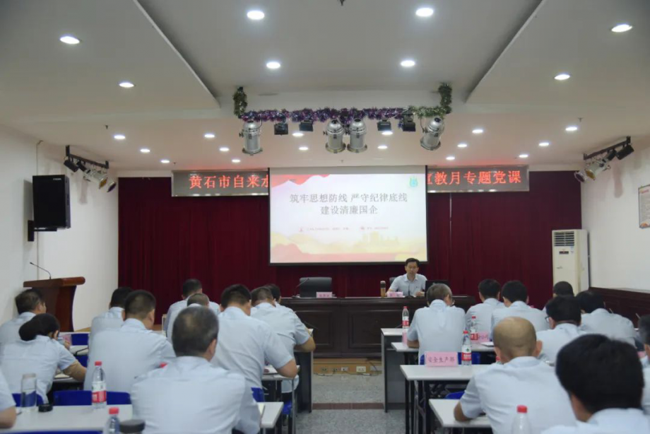 “黨組織負(fù)責(zé)人帶頭講廉政黨課,深入闡釋腐蝕和反腐敗斗爭(zhēng)的嚴(yán)峻性、復(fù)雜性,講清楚反腐敗斗爭(zhēng)的長期性、艱巨性,教育黨員干部始終保持對(duì)‘腐蝕’‘圍獵’的警覺?!卑凑战衲挈h風(fēng)廉政建設(shè)宣傳教育月活動(dòng)要求,9月2日,一堂以“筑牢思想防線,嚴(yán)守紀(jì)律底線,建設(shè)清廉國企”為題的專題黨課在市自來水有限公司開講。公司黨委書記、董事長余曦為公司黨委班子成員、基層單位領(lǐng)導(dǎo)班子成員、公司機(jī)關(guān)正副職干部講授反腐敗斗爭(zhēng)的深遠(yuǎn)意義,引導(dǎo)黨員干部知敬畏、存戒懼、守底線。