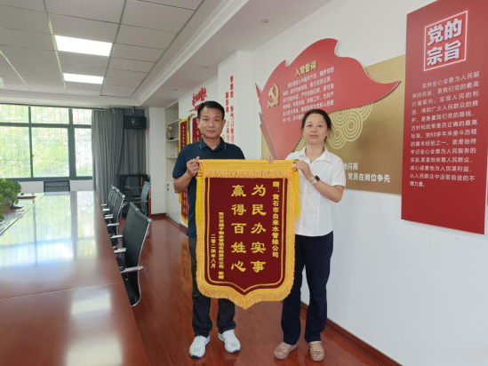 8月17日下午5時,團城山玉龍灣19層用戶水龍頭開始嘩嘩流出自來水,影響玉龍灣小區(qū)高層用戶無水問題,在市水務(wù)集團供水搶修隊員不懈努力下徹底解決。21日上午,黃石市揚子物業(yè)管理有限責(zé)任公司經(jīng)理與居民代表自發(fā)送來錦旗,感謝管維公司維修人員頂著高溫天氣為他們送上“汩汩清泉”。