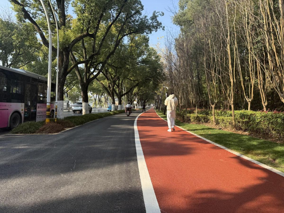 當(dāng)日上午,記者在現(xiàn)場感受到,新鋪設(shè)的彩色瀝青人行道視覺上給人以清新、舒適的感受,杭州東路在彩色綠道的映襯下顯得更加美麗。不少市民紛紛表示,新鋪設(shè)的彩色瀝青路面好似一條蜿蜒的綠色綢帶,呈現(xiàn)出一幅充滿生機(jī)與活力的畫卷。