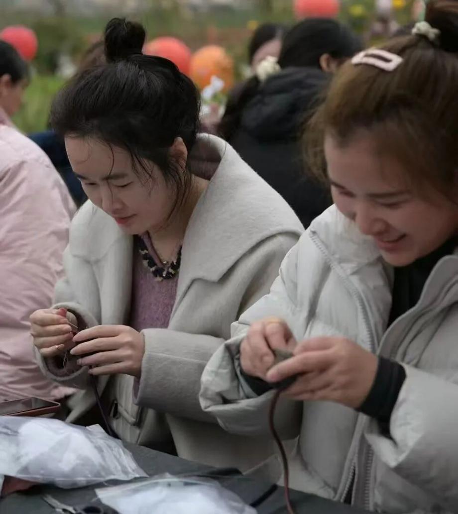 活動現(xiàn)場,女職工們在老師指導(dǎo)下,親手制作云紗花朵手工掛飾,穿針引線、精心制作,在指尖創(chuàng)作中感受非遺文化魅力,體會匠心精神,收獲創(chuàng)作樂趣。