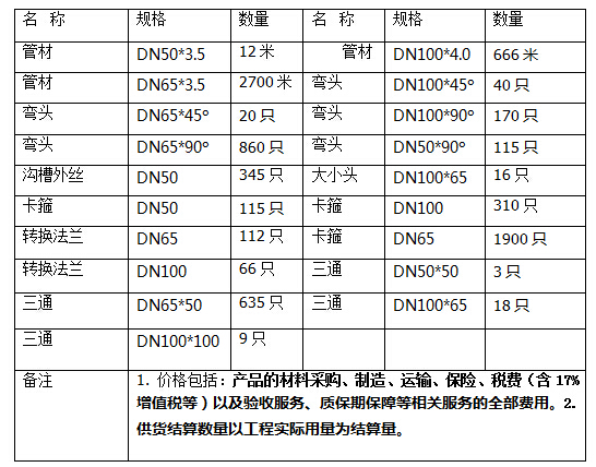 供貨范圍:給水內外涂塑復合鋼管及相應鋼塑管件