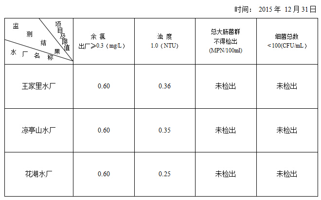 發(fā)布時(shí)間:2015-12-31 所屬欄目:水質(zhì)報告 點(diǎn)擊次數:4769 返回上頁(yè)