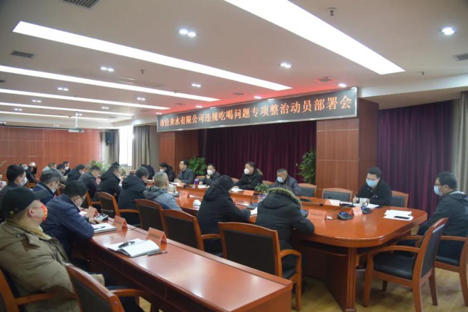 1月19日上午,市自來(lái)水有限公司召開(kāi)違規吃喝問(wèn)題專(zhuān)項整治動(dòng)員部署會(huì ),傳達省市、集團違規吃喝問(wèn)題專(zhuān)項整治工作精神和市紀委典型案例通報。
